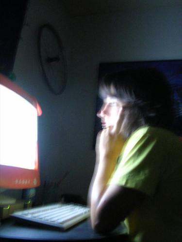 sarah computering, flipping me off